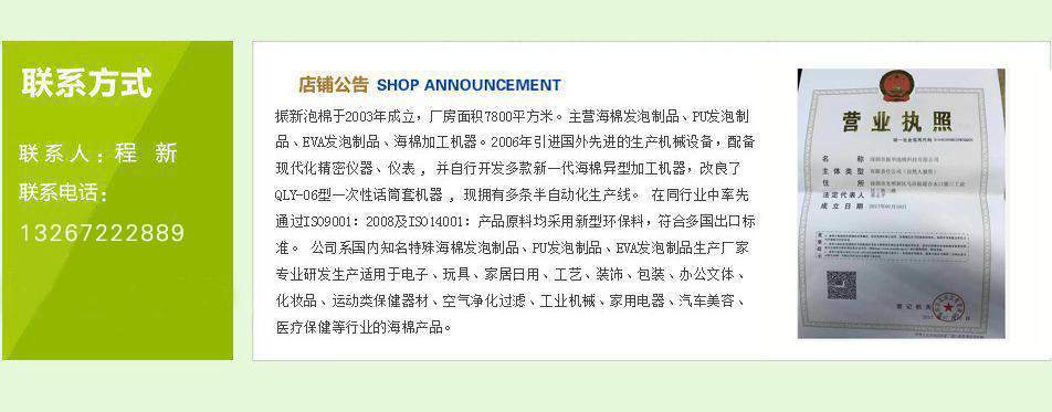 深圳市振新泡棉科技有限公司于2003年成立,廠房面積7800平方米。主營海棉發(fā)泡制品、PU發(fā)泡制品、EVA發(fā)泡制品、海棉加工機(jī)器。2006年引進(jìn)國外先進(jìn)的生產(chǎn)機(jī)械設(shè)備,配備現(xiàn)代化精密儀器、儀表 , 并自行開發(fā)多款新一代海棉異型加工機(jī)器,改良了QLY-06型一次性話筒套機(jī)器 , 現(xiàn)擁有多條半自動化生產(chǎn)線。 我們擁有一批經(jīng)驗豐富的工程技術(shù)人員和高級管理人員,在同行業(yè)中率先通過ISO9001:2008及ISO14001:產(chǎn)品原料均采用新型環(huán)保料,符合多國出口標(biāo)準(zhǔn)。 公司系國內(nèi)知名特殊海棉發(fā)泡制品、PU發(fā)泡制品、EVA發(fā)泡制品生產(chǎn)廠家,專業(yè)研發(fā)生產(chǎn)適用于電子、玩具、家居日用、工藝、裝飾、包裝、辦公文體、化妝品、運動類保健器材、空氣凈化過濾、工業(yè)機(jī)械、家用電器、汽車美容、醫(yī)療保健等行業(yè)的海棉產(chǎn)品。 產(chǎn)品的類型如:高密度聚酯海棉、普通海棉、異型定型海棉、防火/阻燃海棉、高回彈/慢回彈海棉、過濾網(wǎng)狀海棉、EVA玩具禮品、PU發(fā)泡定型玩具禮品等等。產(chǎn)品名稱如:耳機(jī)/話筒KTV海棉套、海棉圓球、洗刷海棉、吸水海棉、木漿海棉、化妝海棉、相機(jī)海棉、墨盒海棉、壓縮海棉、橡膠海棉、粗細(xì)孔過濾海棉、波峰隔音海棉、醫(yī)用海棉、海棉枕頭、包裝防震海棉、1mm厚海棉、電子/醫(yī)用海棉棉簽、EVA球、EVA智力拼圖、EVA鑰匙扣、PU座墊、PU公仔、PU球類等等。 我們還獲得多家國際知名廠商的授權(quán)資格,代理多品種家庭用品。 產(chǎn)品多年來一直銷往全球,深受廣大用戶和客商的青睞。